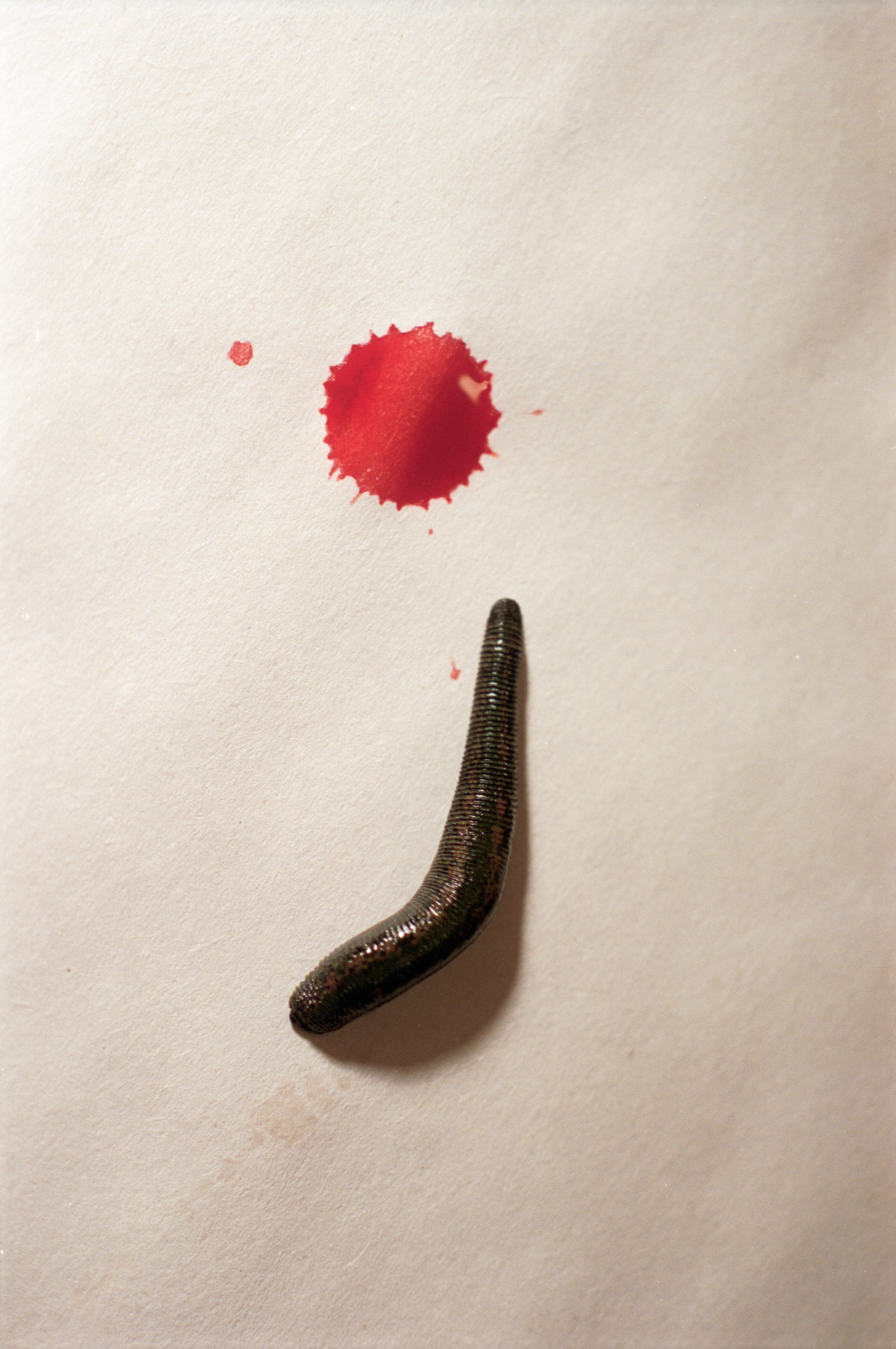 The function of leeches in medical history also plays a part in this project conceptually. Bloodletting was and still is a typical procedure done with medical leeches in order to prevent and treat illnesses. People believed that all disease stemmed from imbalances in the body's “humors”, The first of which being blood. It was thought that if the infected blood was removed the person would get better. Although leeches do have medical uses in present time (They inject anticoagulants to prevent blood clotting when they bite) the common practice of bloodletting has been medically disproved leaving only a handful of people to still practice it today. Using these ideas I explore the symbolism of the leech as a healer but also as a bloodsucking parasite.